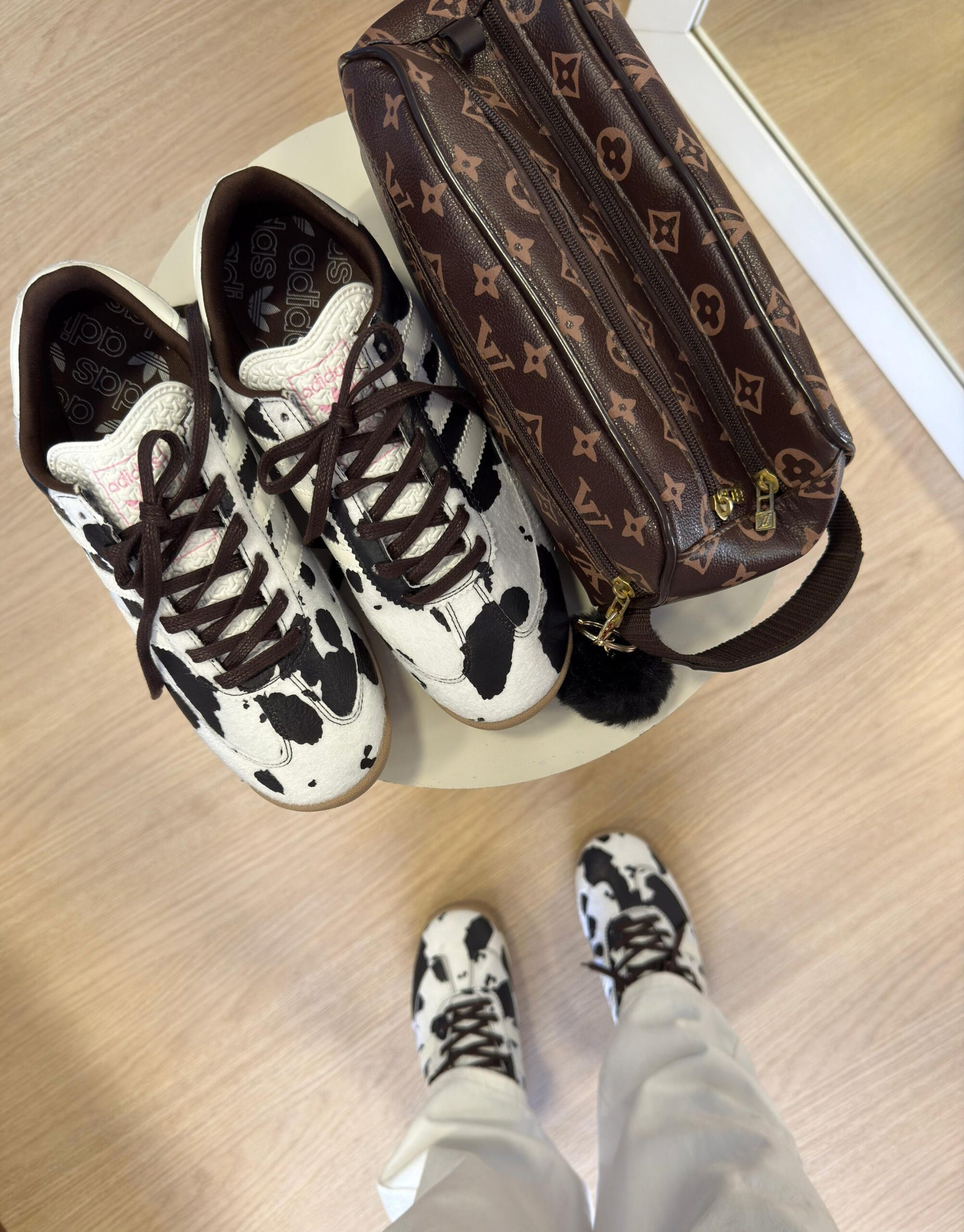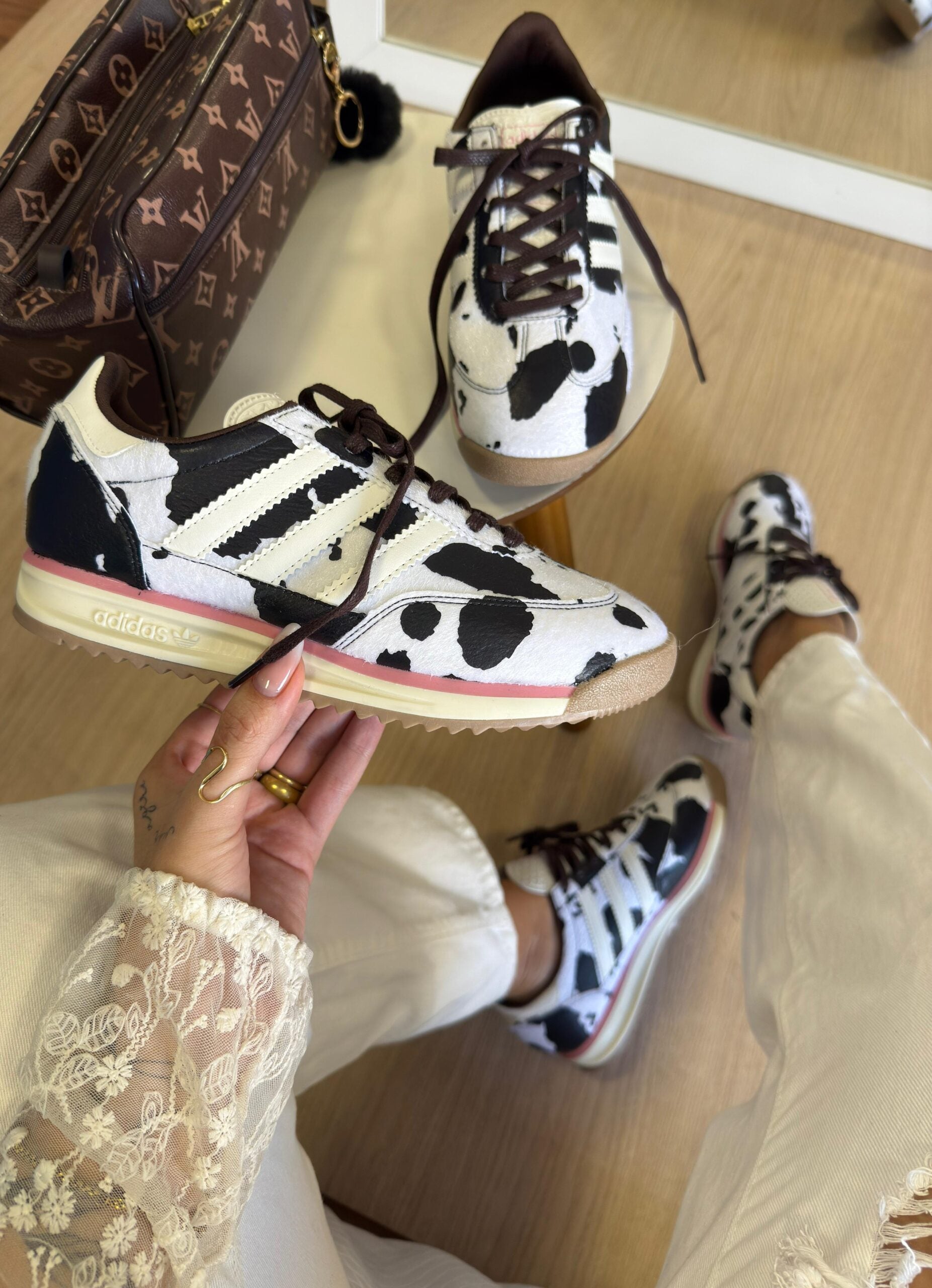 Adidas SL 72 Vaquinha, Adidas SL 72 Cow Print, Tênis Adidas estampa de vaca, SL 72 OG edição limitada, Adidas SL 72 ASOS exclusivo, Tênis retrô Adidas feminino.