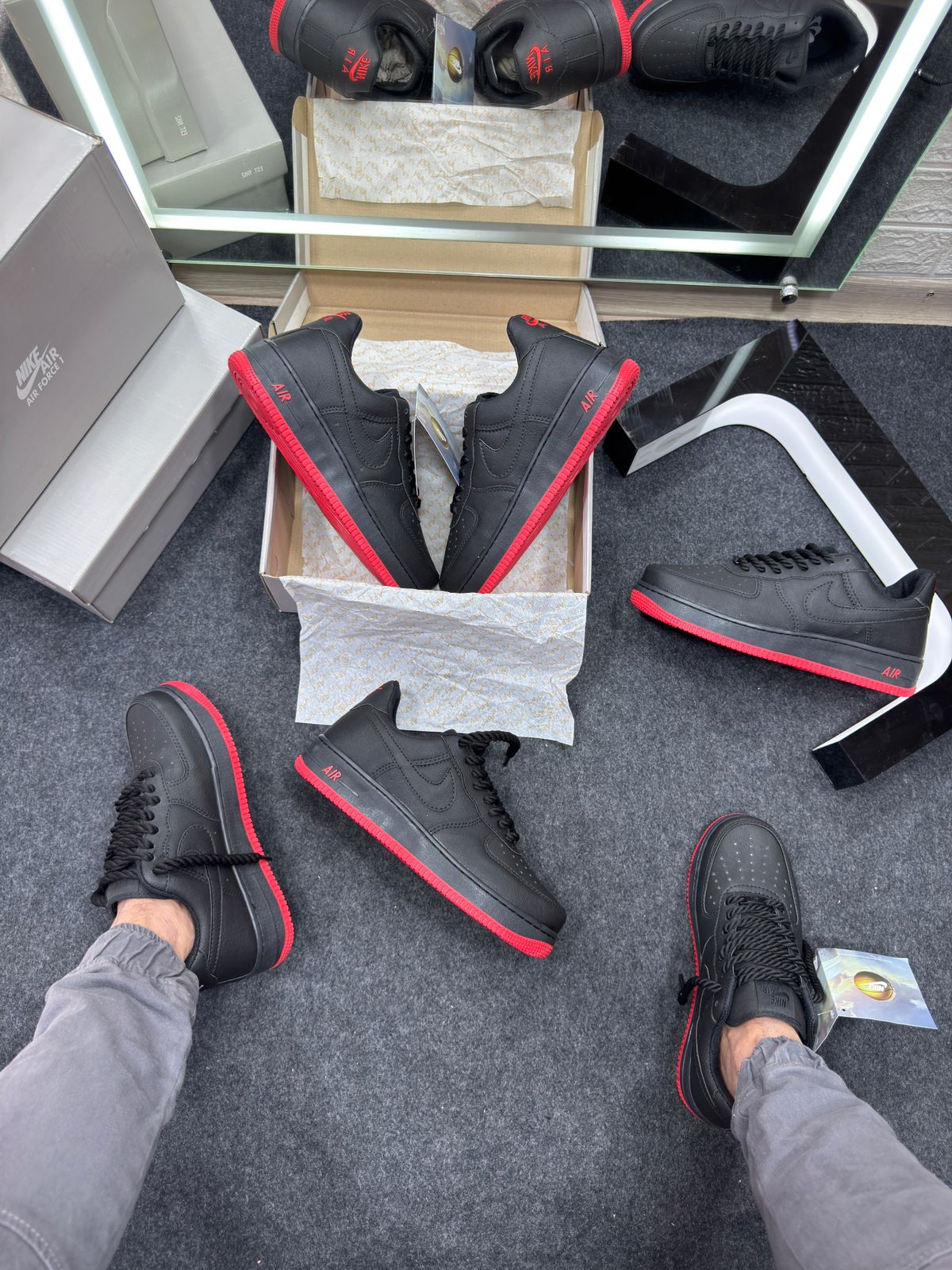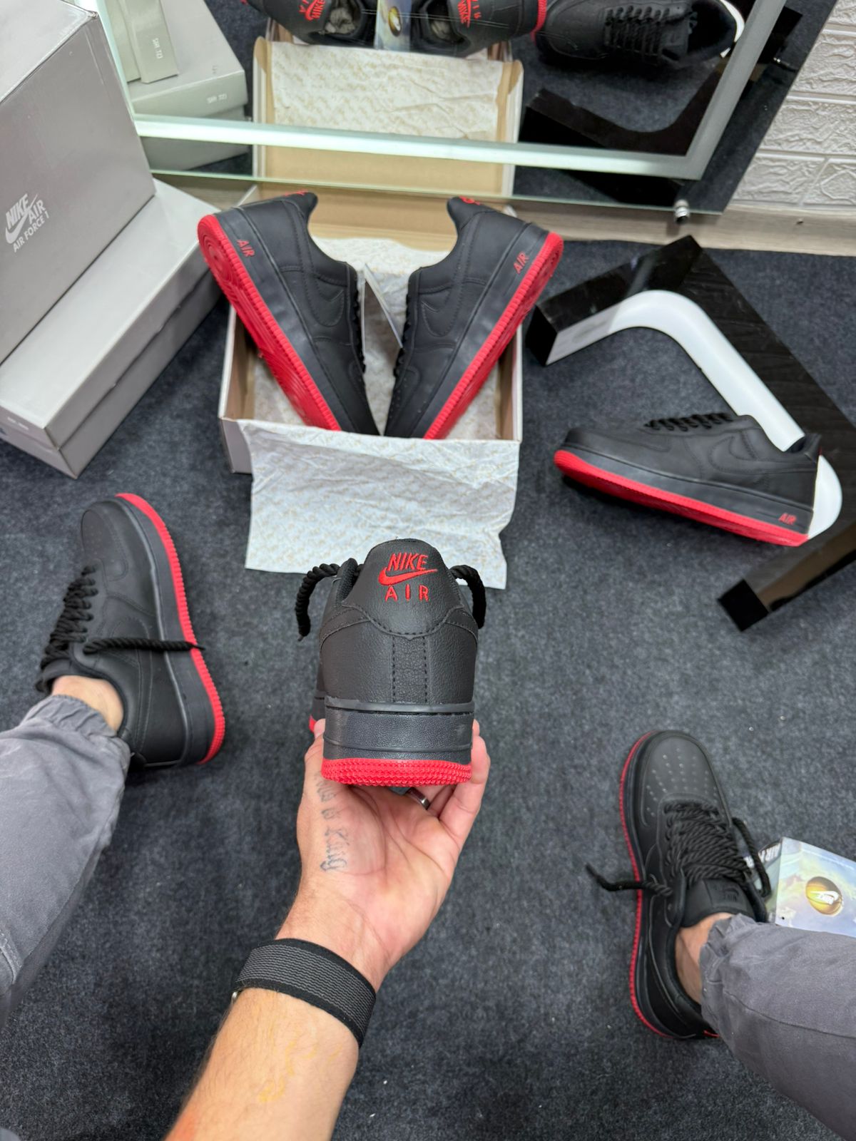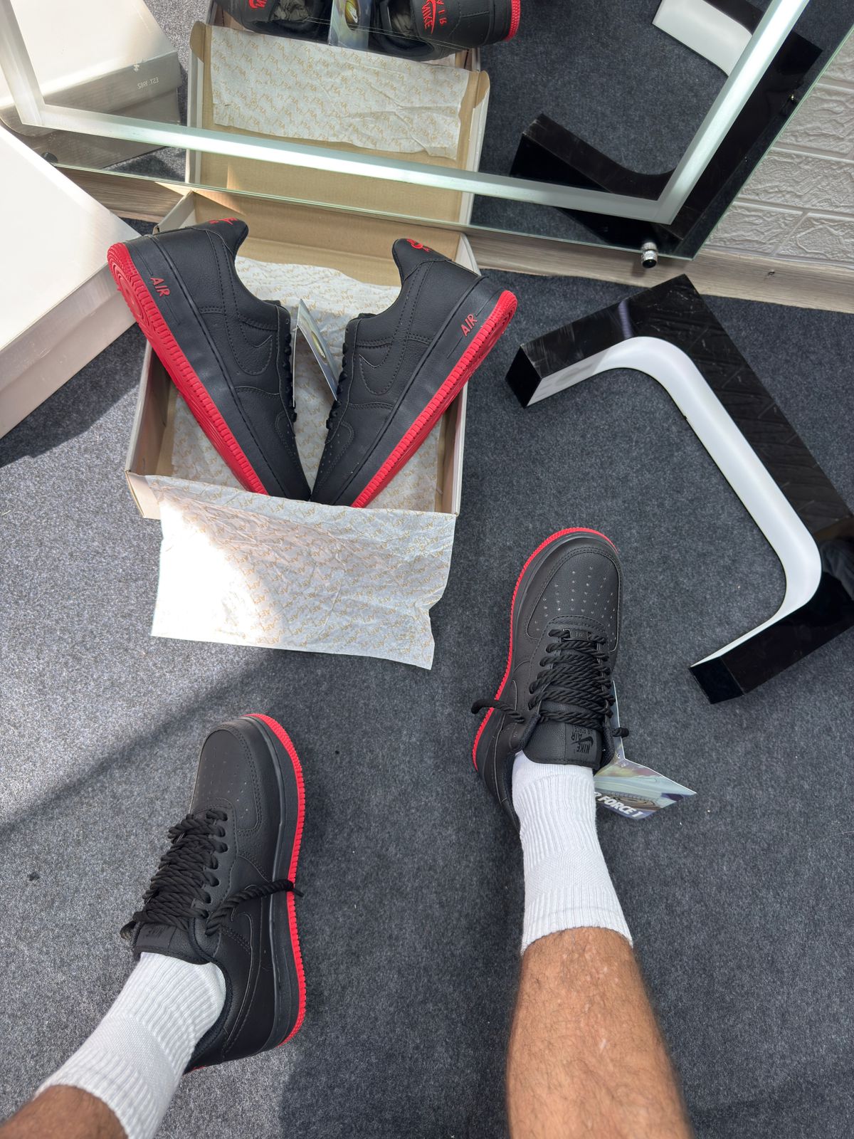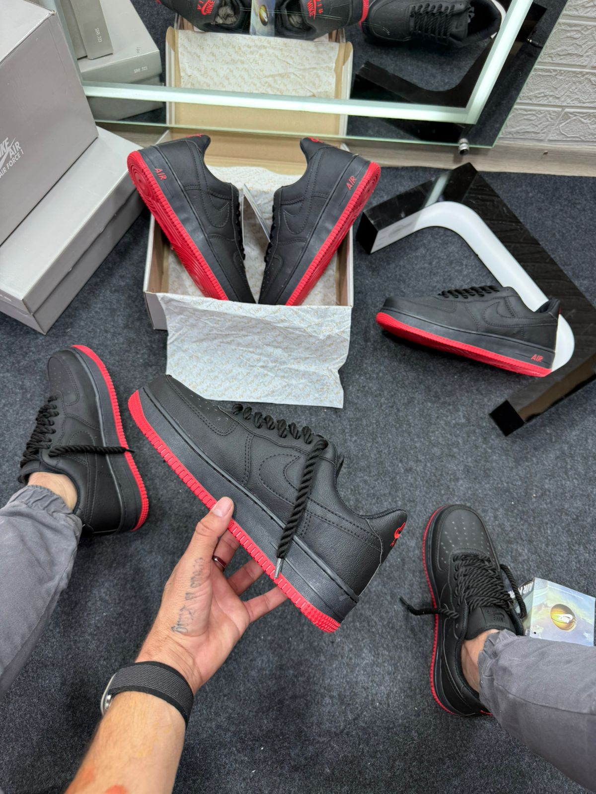 O Nike Air Force 1 Low Black & Red (também conhecido como Black / University Red) repagina o clássico Air Force 1 com um visual marcante em preto e vermelho, perfeito para atacadistas que querem agregar potência visual, tradição e alta demanda ao mix de produtos.