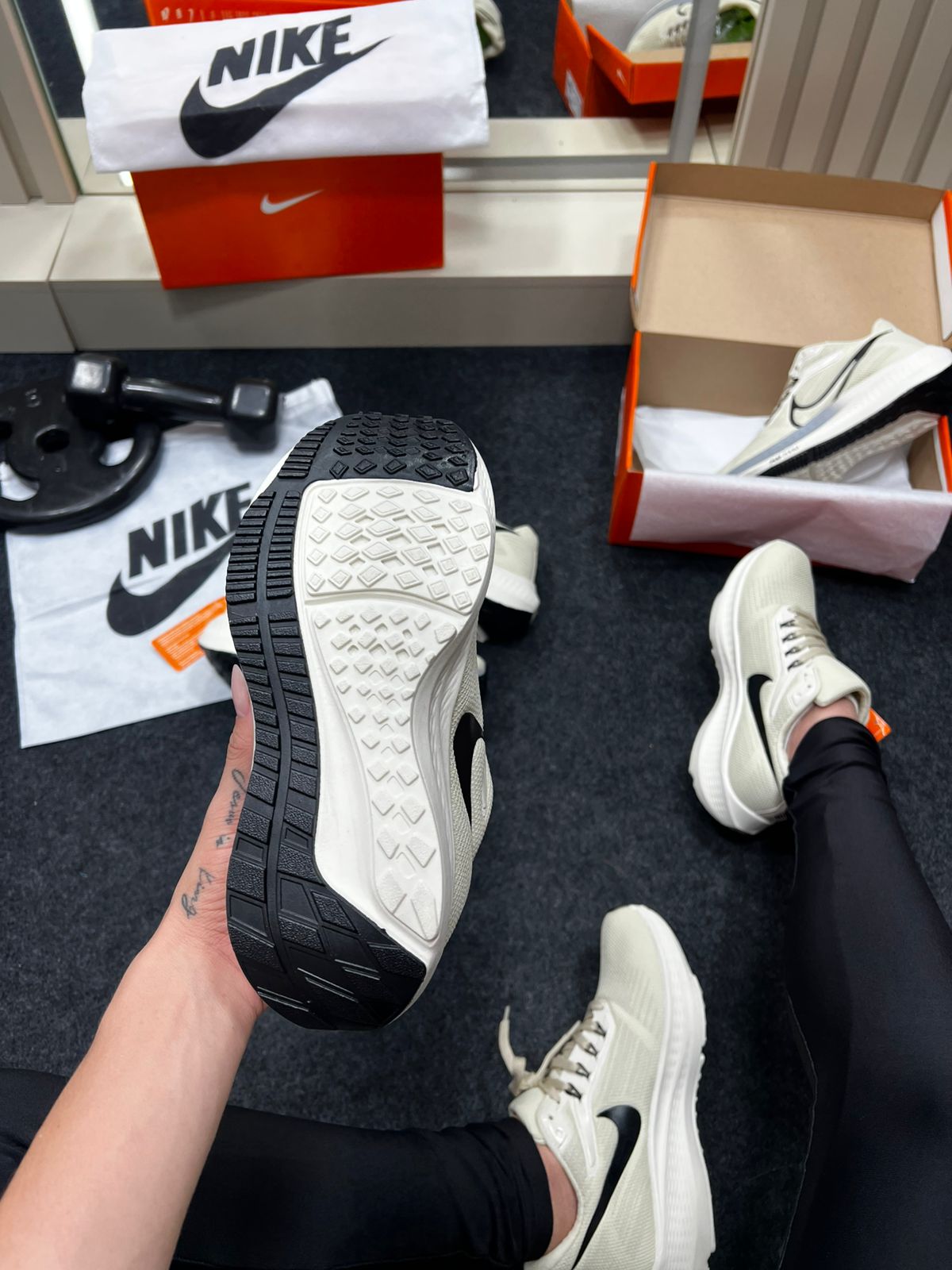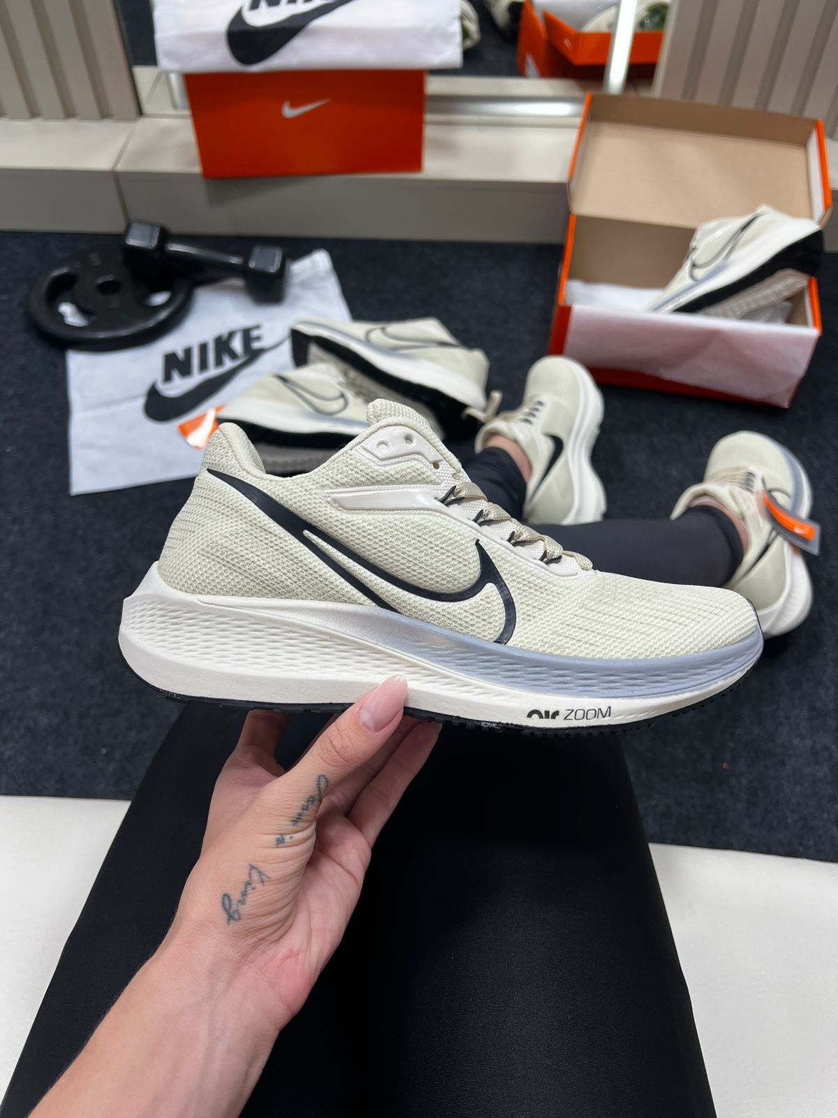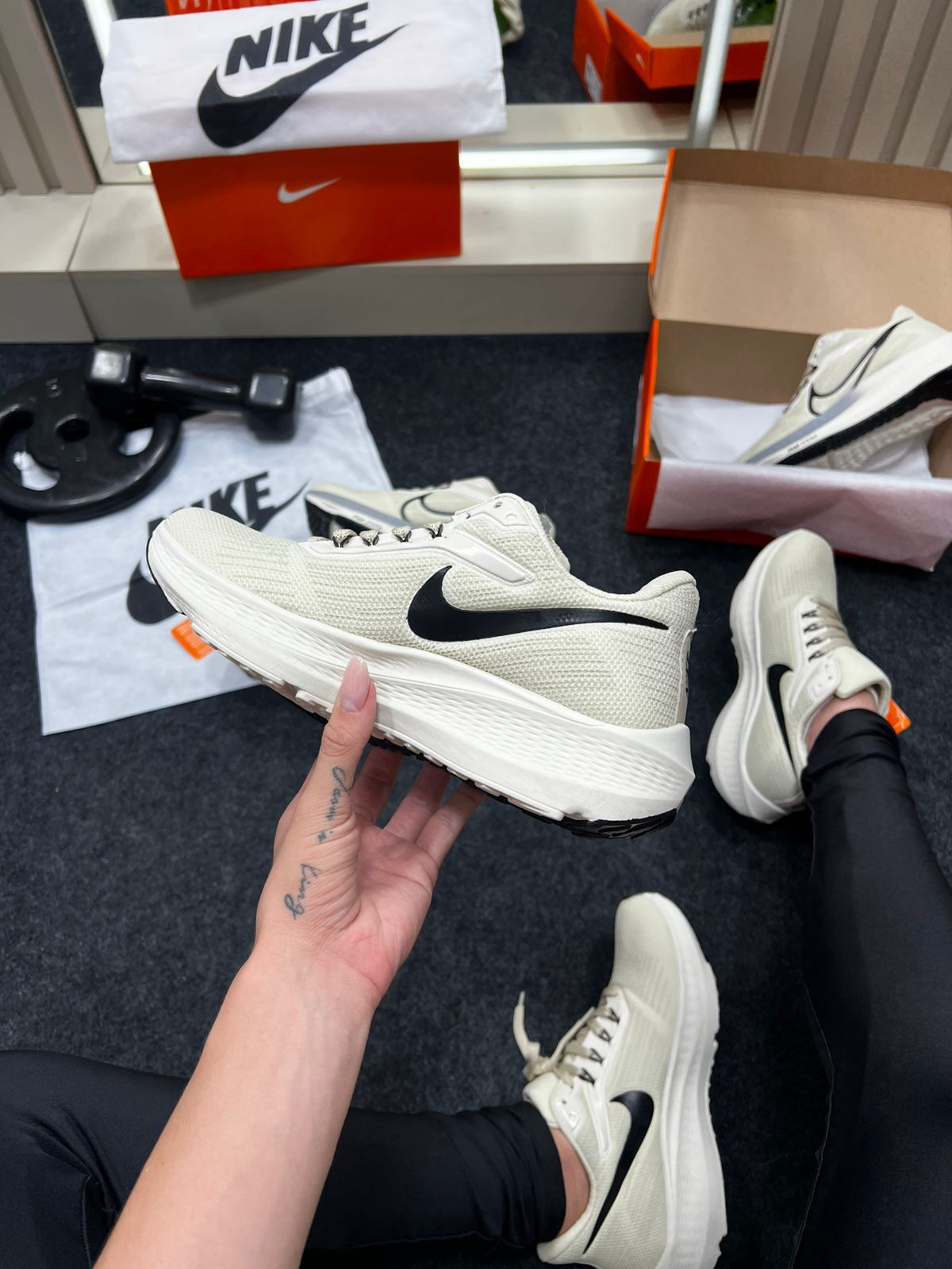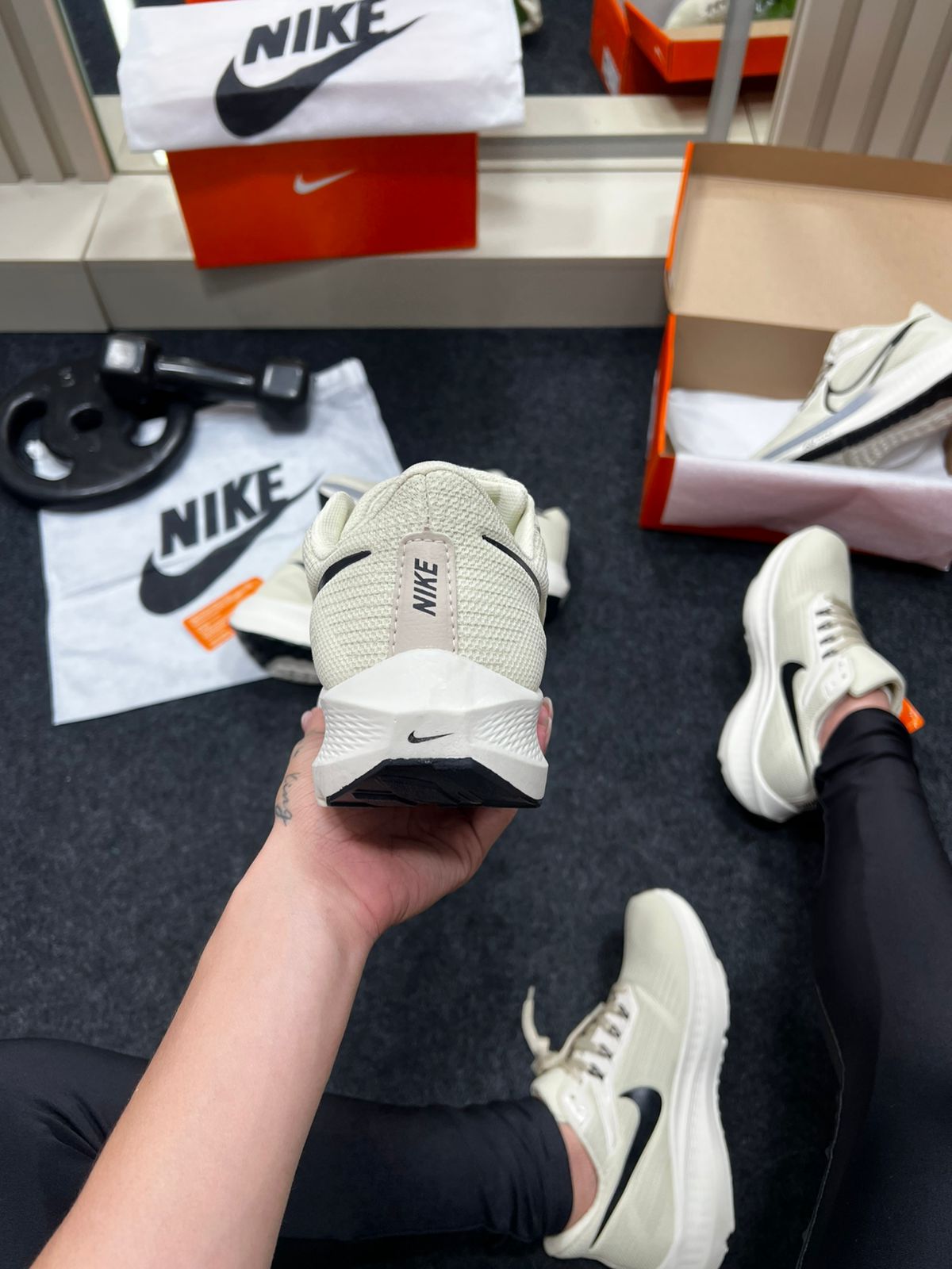 No tom bege predominante, o cabedal transmite leveza e elegância; os detalhes em preto (solado, logo ou acabamentos) adicionam contraste e sobriedade, facilitando a combinação com calças, roupas de treino ou estilos streetwear. E o melhor: por baixo desse visual “quiet luxury”, há tecnologia de corrida de ponta.