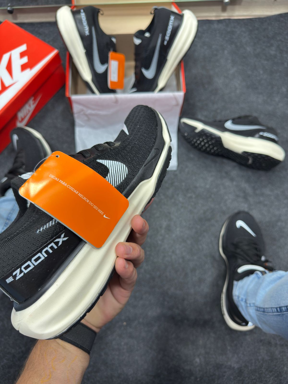 Amortecimento máxima com ZoomX + cabedal Flyknit respirável + estilo clean branco/preto = escolha premium para varejistas exigentes.